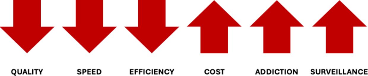 Companies admit to gathering data (which cannot be deleted) and selling it to the highest bidder. So-called upgrades rarely simplify life; instead, they often add new steps that hinder productivity while creating fresh opportunities for companies to capture and monetise data.