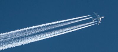 Jet aircraft, both civilian and military, are now thought to be releasing aerosols into the upper atmosphere, far beyond ordinary water vapour trails. These are known as chemtrails. They can be seen forming grids, crosses, or parallel lines before turning into thin static cloud layers. There are many chemical in this, including aluminium, barium, strontium, sulphur particles, polymer fibres, and possibly biological elements.